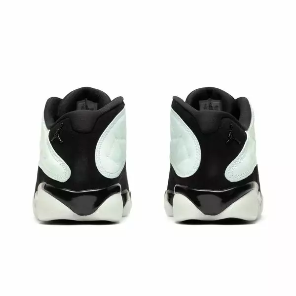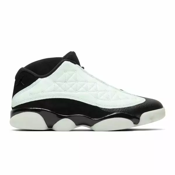 The Air Jordan 13 Retro Low steps out in a “Singles Day” colorway in which the light green leather upper does all the talking. It features a black leather toe box and black nubuck on the heel and collar.