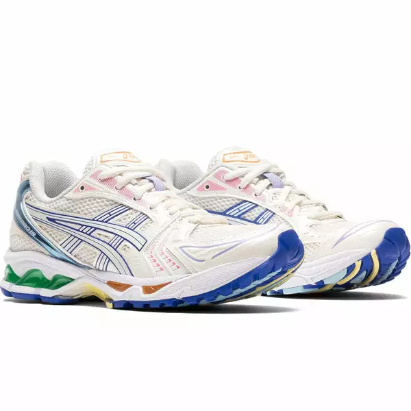 The layered mesh and leather construction, along with the prominent featuring of sleek colors are a firm link to the original design language, while updated tooling place the GEL-Kayano 14 into a new, fashion ready context.