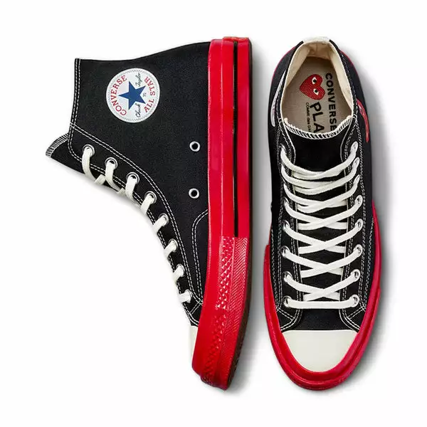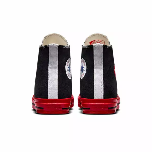 CDG Play expands on their hit Converse Chuck Taylor series, this time with a Chuck Taylor Hi featuring a fully visible heart logo and bold contrasting sole and heel tape to help stand out from the crowd.