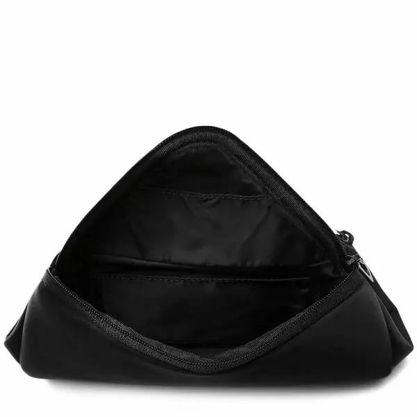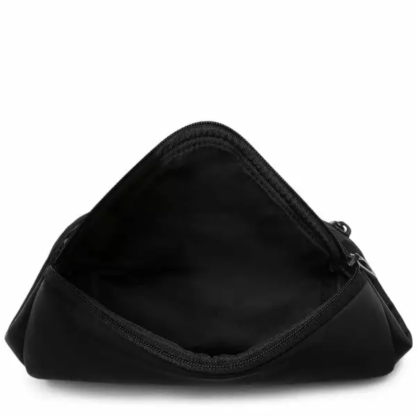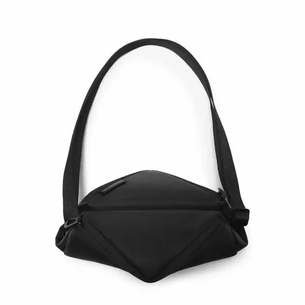 Made from black 100% Nylon with a silky feel, this moon-shaped crossbody has a practical internal zippered pocket and features a detachable eyewear pouch positioned under the flap. The main compartment is extendable; the zip at the base of the bag opens up to reveal a panel of bright orange, bringing an optional splash of colour to this black bag while increasing the volume. The ADDA shoulder strap can also be worn separately as a minimal crossbody.