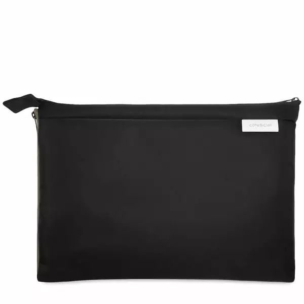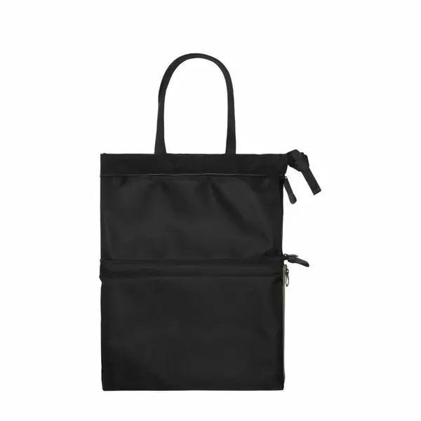 Made from black 100% Nylon with a silky feel, this hybrid between laptop sleeve and clutch bag transforms into a large carrying volume, to be used as a shopper when needed. Suitable for laptops of up to 15”, the ZAAN can be used to transport just the essential tools to the office. In tote format it is ideal for carrying additional items.