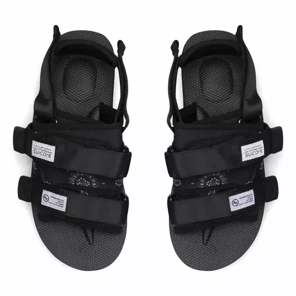Based on the double-strap MOTO sandal, the collaborative model features an added heel strap with a custom bandana pattern applied to the uppers and heel pads. These special edition models feature the NBHD logo printed on the heel velcro portion.