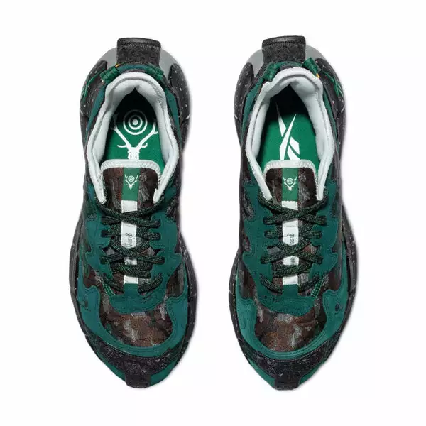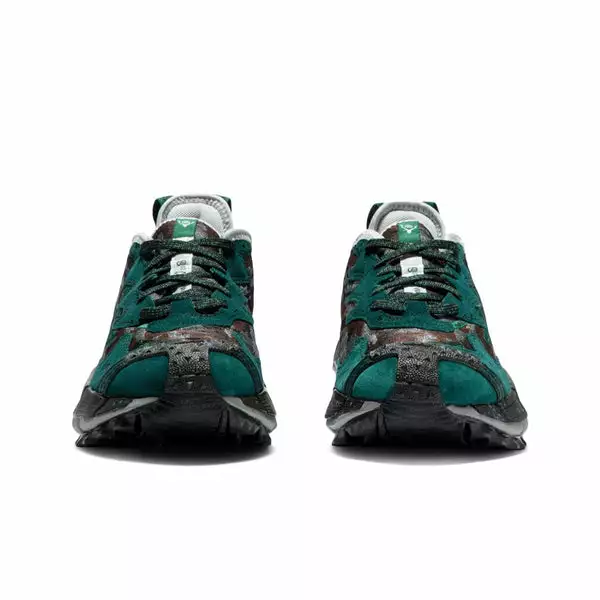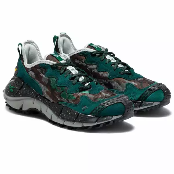 With a focus of technical design, Japanese clothing brand South2 West8 is the perfect hiking partner for the Reebok Zig Kinetica II Edge. With eye-catching camo and green suede overlays on top of spiked out Vibram Ecosteps, they go beyond the peak of mere functionality, infusing city aesthetics into the popular trail model.