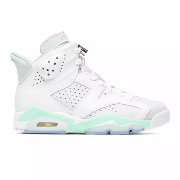 The Air Jordan 6 steps out in a “Mint Foam” colorway in which the white nubuck upper does all the talking. As a result the distinguished heel pull and cut-out tongue take on a sculptural energy. Closed out with some mint accents, this Jordan 6 is all about sole power.